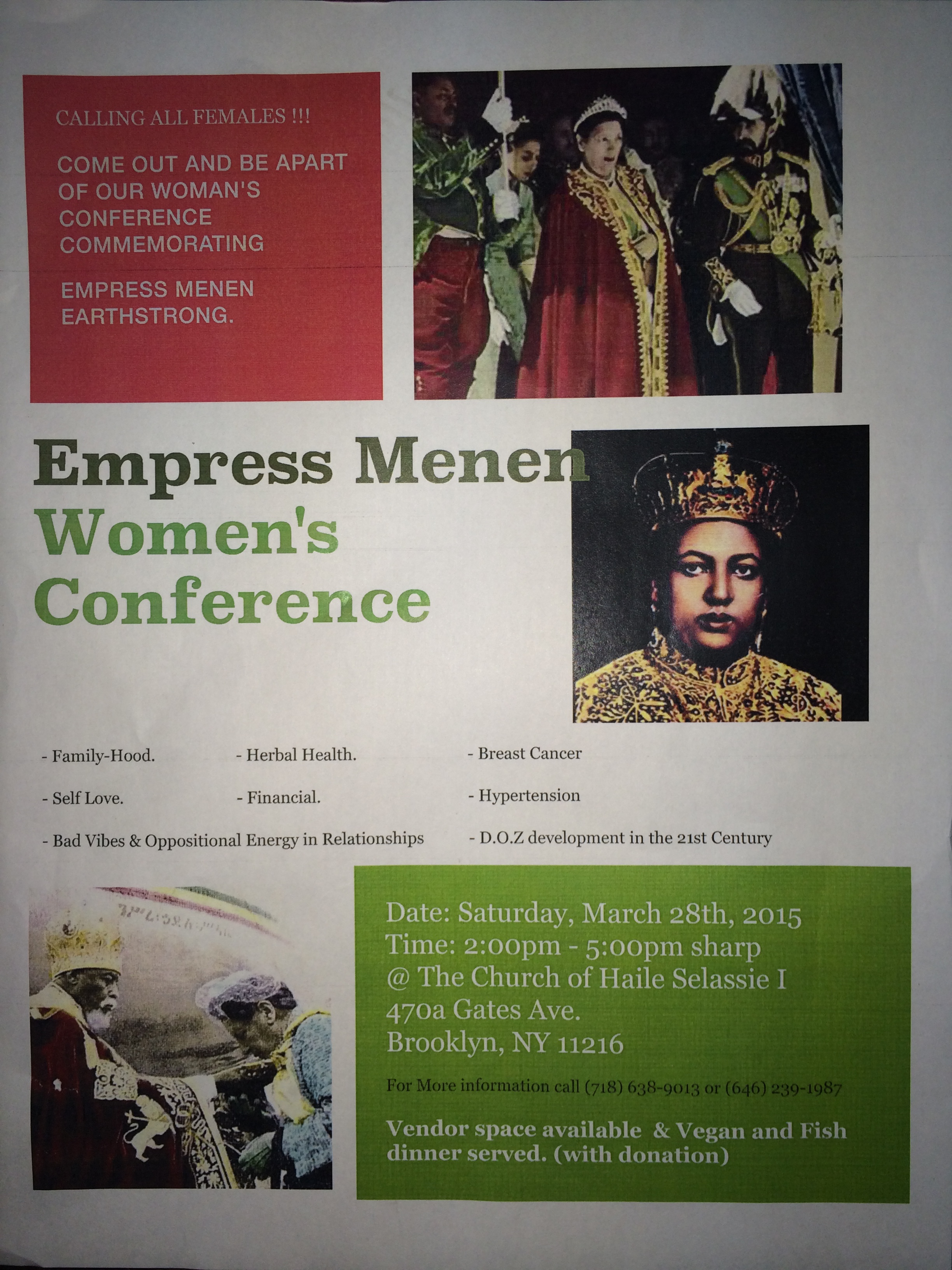 Come out and be a part of our Woman's conference commemorating Empress Menen Earthstrong