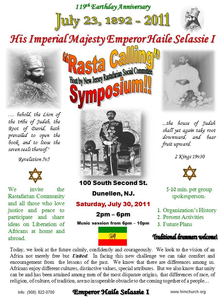 123rd Earthstrong of His Imperial Majesty Emperor Haile Selassie I born Tafari Makonnen in Harar, Ethiopia in the year of John 16th of Hamle 1884 (July 23rd 1892)