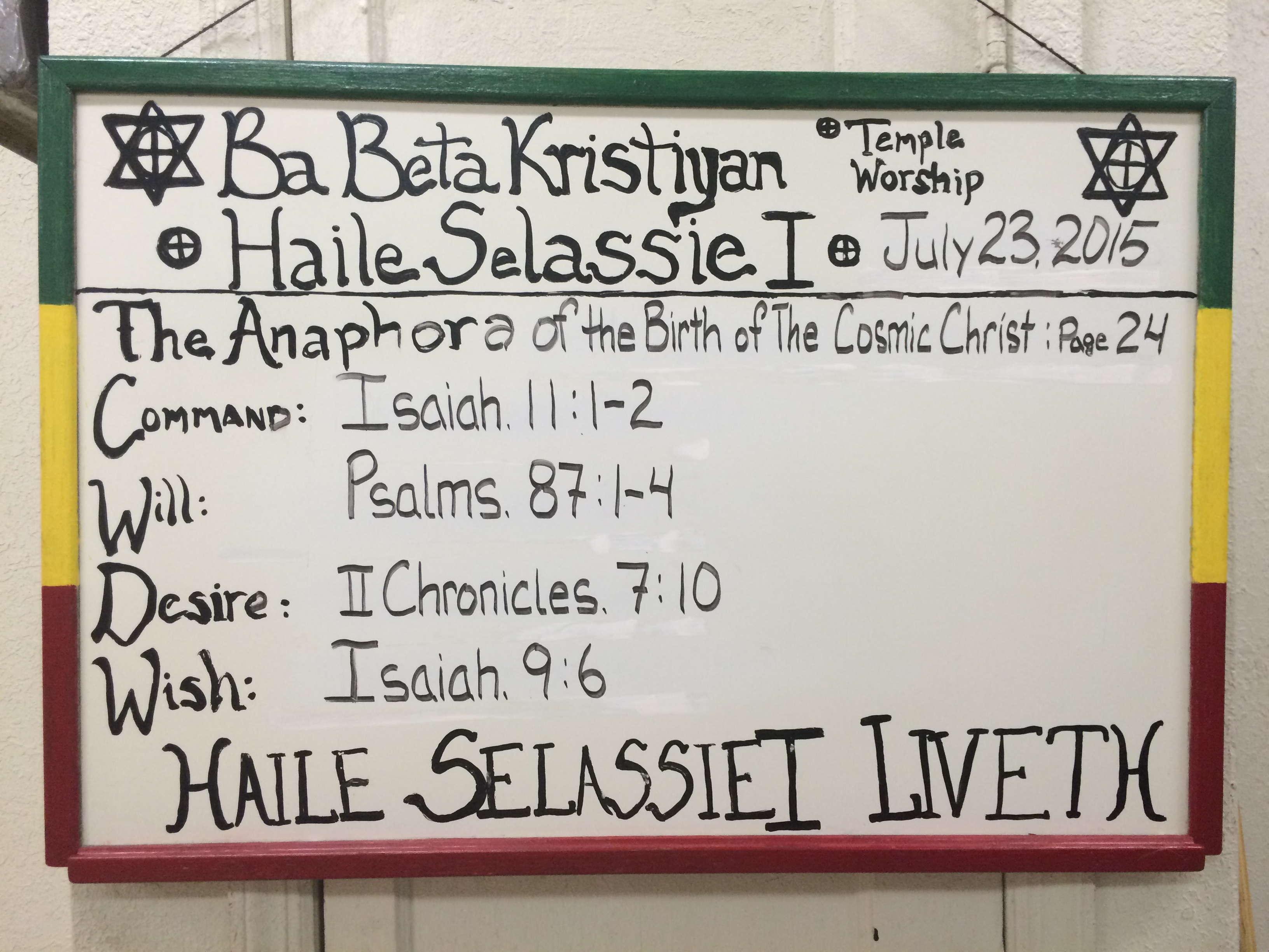 “I am the LORD Rastafari, your Holy One, the Creator of Israel, your King.”