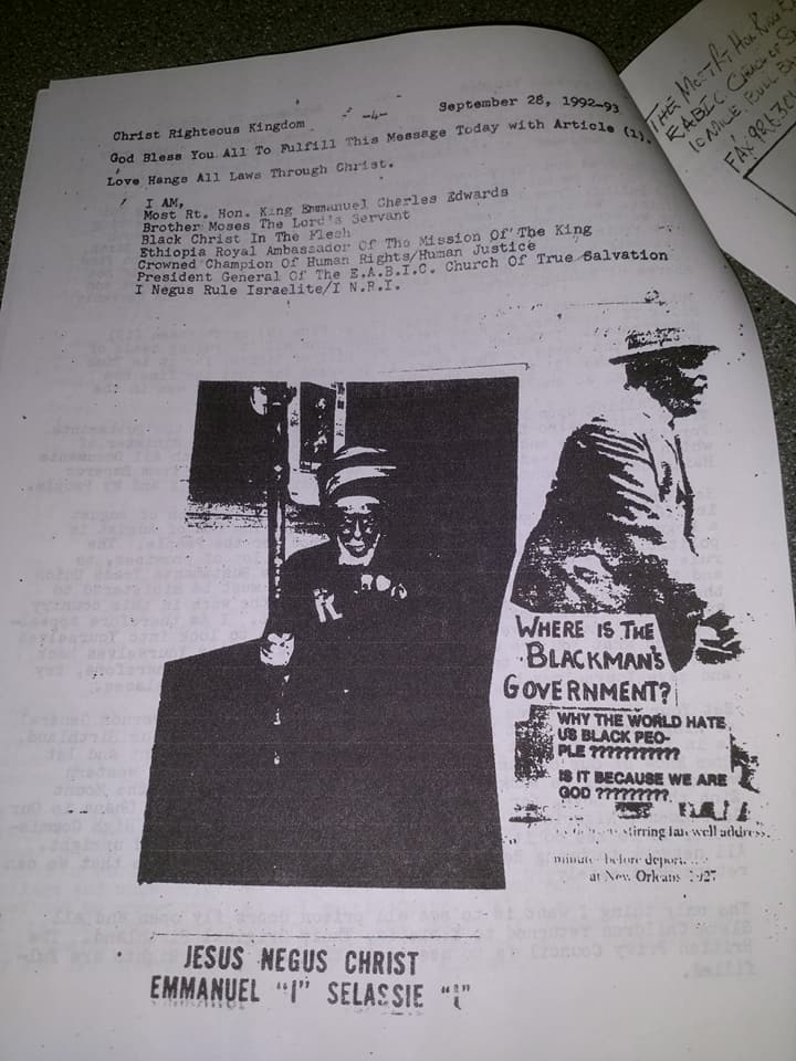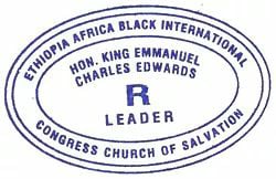 The Most Rt. Hon. King Emmanuel Charles Edwards, called "King Emmanuel" by his followers, is the Rastafari founder, leader, President, God and King of the "Ethiopia Africa Black International Congress, True Church of Divine Salvation (EABIC)". High Priest Emmanuel is regarded to have established the biblical Churchical Order of Melchizedek as King-Priest which governs this Congress functioning as Church and State. On March 1, 1958, the E.A.B.I.C was formed, now headquartered in Bull Bay, Jamaica. This group of Rastafari soon became known as Bobo Shanti, adopting their name from the Ashanti tribe in Ghana, West Africa.[1] King Emmanuel teaches that the black diaspora scattered across the Earth and predominantly in the west are the true Israelites