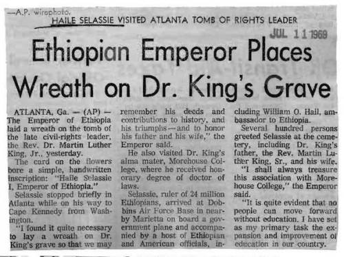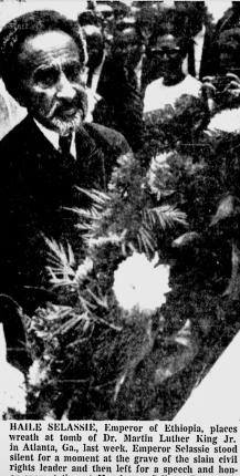 Emperor Haile Selassie I, The only Head of State to lay a wreath at Martin Luther King Jr's grave. This is an amazing picture brought forth by Tseghe Selassie Selassie. The Emperor Haile Selassie I shows so much emotion that I have to draw or paint it. Afterward He went to Moorehouse University and spent time with Martin Luther King Sr.