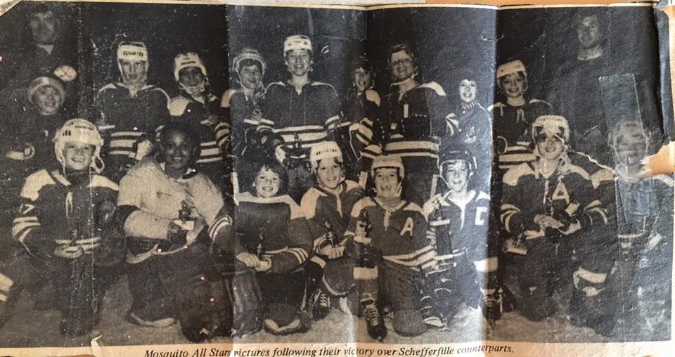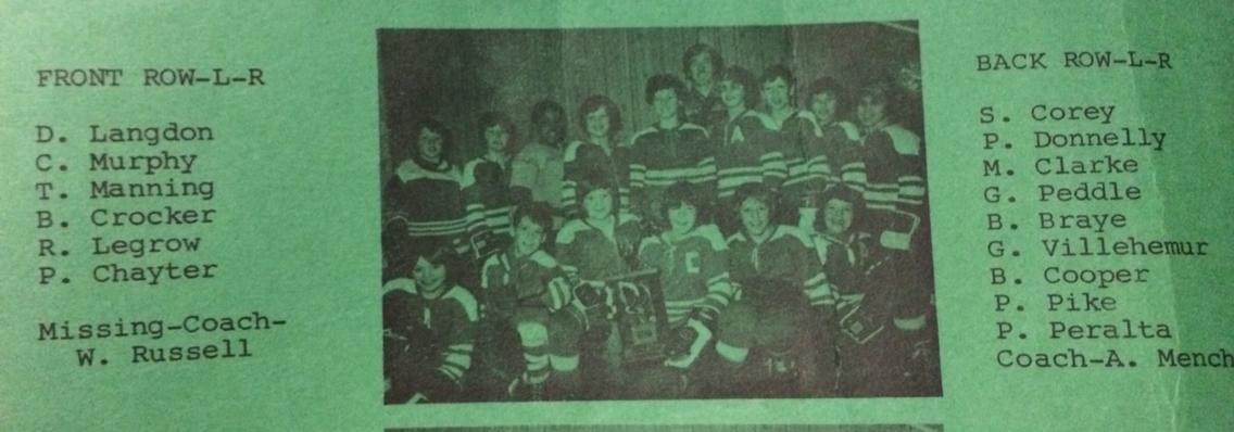 Back Row (l-r): Wayne Russell (Coach) David Langdon Robert Cooper (RW) Paulo Peralta (LW) Paul Donnelly (D) Byron Braye (D) Brian Jacobs (C) Greg Peddle (LW) Paul Pike (RW) Dennis Langdon (LW) A. Mention (Coach)